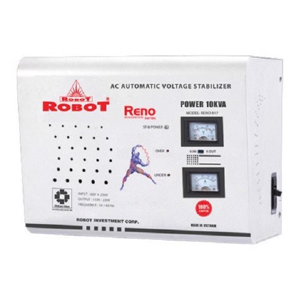 Ổn áp ROBOT sử dụng Biến thế 100% dây Đồng, phe silic đẳng hướng nhập khẩu từ Mỹ, thiết kế đủ tải, nặng hơn các sản phẩm khác, vì vậy công suất mạnh hơn, bền hơn, phù hợp nhiều thiết bị hoạt động cùng lúc. Bên cạnh đó, độ ổn của sản phẩm ≤40Db, đảm bảo không phát ra tiếng ồn lớn, không làm ảnh hưởng đến không gian sinh hoạt của gia đình và văn phòng làm việc.